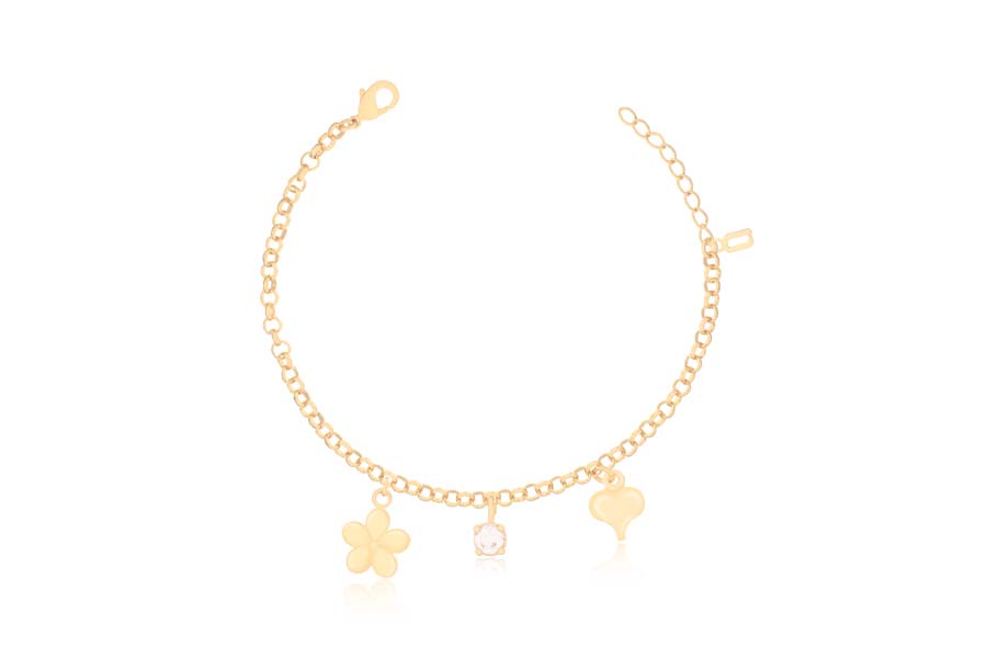 PULSEIRA BANHADA EM OURO, ELO 2,30mm LARGURA, 16cm COMPRIMENTO, EXTENSOR 5cm COMPRIMENTO E CORAÇÃO 7mm LARGURA, PARA QUALQUER COR