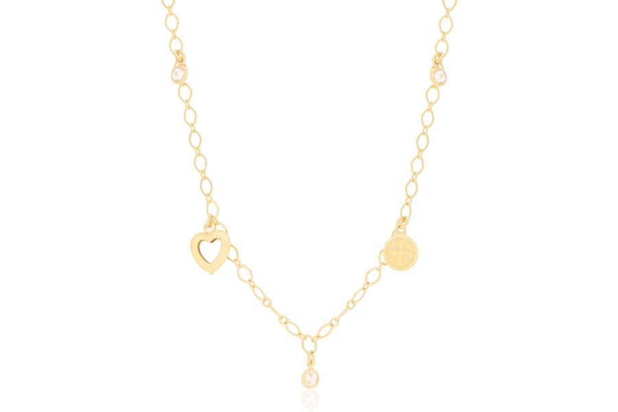 GARGANTILHA BANHADA EM OURO, ELO 1,20mm LARGURA, 40cm COMPRIMENTO, EXTENSOR 10cm COMPRIMENTO E CORAÇÃO 7mm LARGURA, PARA QUALQUER COR
