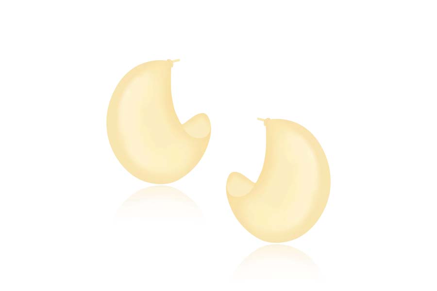 BRINCO BANHADO EM OURO, MEIA ARGOLA, 16mm ALTURA E 10,50mm LARGURA, LISO OU ACETINADO