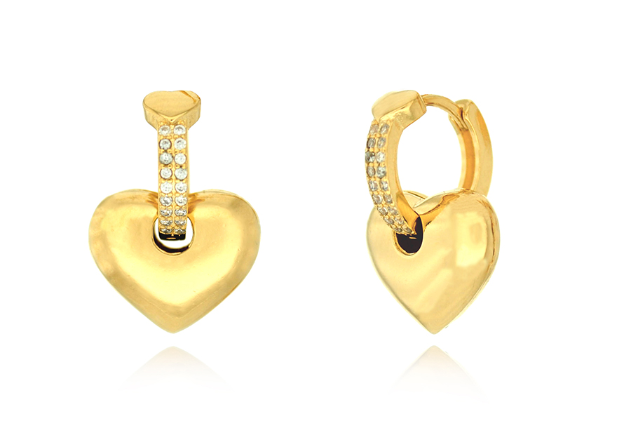BRINCO BANHADO EM OURO, CORAÇÃO ZIRCÔNIA 6X6mm, PARA QUALQUER COR DE PEDRA