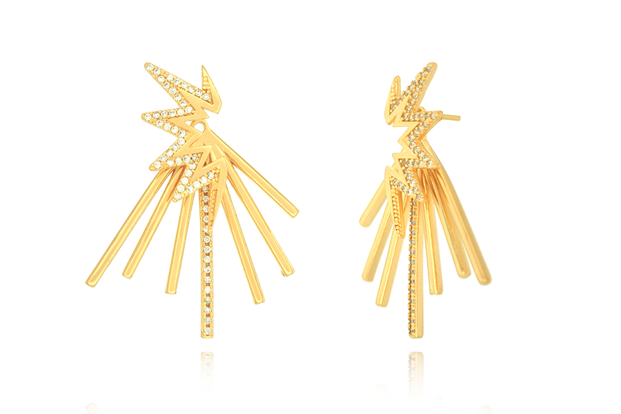 BRINCO BANHADO EM OURO, TRIÂNGULO 17mm ALTURA, 12,50mm LARGURA E ZIRCÔNIA 4,50mm DIÂMETRO, QUALQUER COR