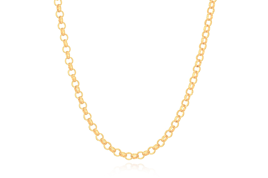 CORRENTE BANHADA EM OURO, ELO CORDA 3mm, 45cm COMPRIMENTO, EXTENSOR 5cm COMPRIMENTO E PESO 12,20g