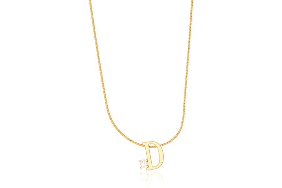 GARGANTILHA BANHADA EM OURO, ELO 0,70mm, 40cm COMPRIMENTO, EXTENSOR 10cm COMPRIMENTO, LETRA Q, 11mm ALTURA E PONTO DE LUZ 3mm