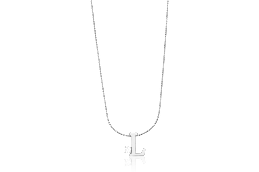 GARGANTILHA BANHADA EM PRATA LEVE, ELO 0,70mm, 40cm COMPRIMENTO, LETRA 11mm ALTURA E PONTO DE LUZ 3mm