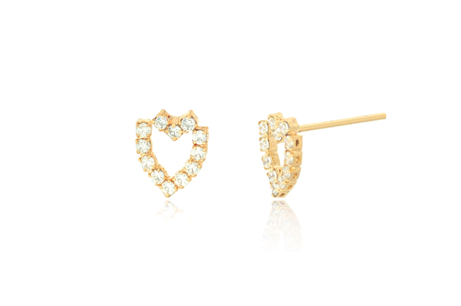 BRINCO BANHADO EM OURO, CORAÇÃO E PONTO DE LUZ 6mm ALTURA