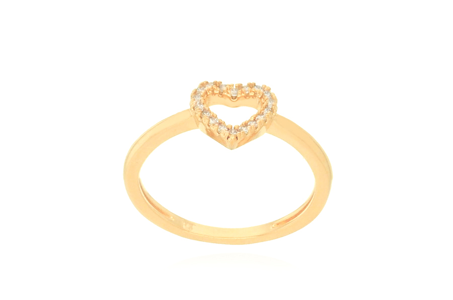 ANEL BANHADO EM OURO, CORAÇÃO COM 53 ZIRCÔNIAS, 14mm LARGURA E 12mm ALTURA
