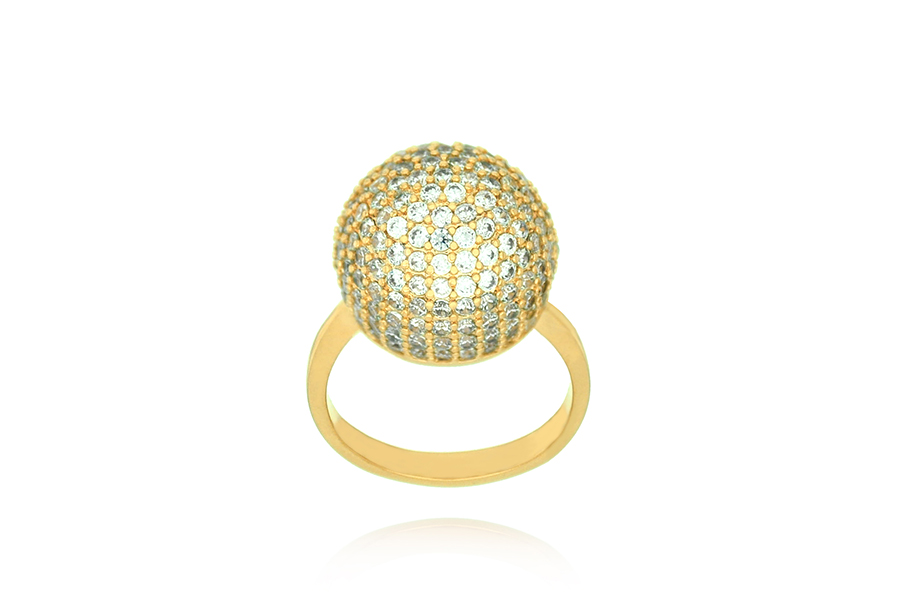 ANEL BANHADO EM OURO, CRISTAL REDONDO 27mm DIÂMETRO