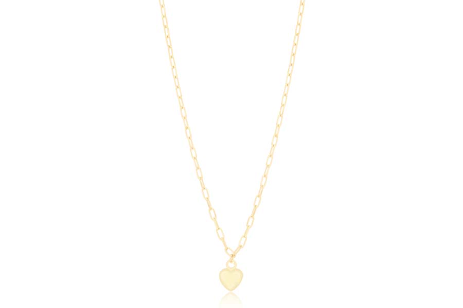 GARGANTILHA BANHADA EM OURO, ELO 7,50mm LARGURA, 43cm COMPRIMENTO, EXTENSOR 10cm COMPRIMENTO E CORAÇÃO 35mm LARGURA, LISO OU ACETINADO
