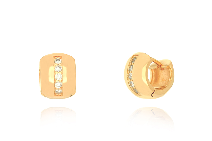 BRINCO BANHADO EM OURO, ASA CRAVEJADA DE BAGUETES E ZIRCÔNIAS REDONDAS NAS PONTAS, 21mm LARGURA
