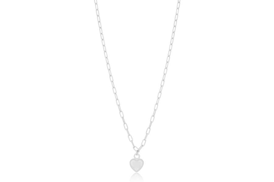 GARGANTILHA BANHADA EM OURO, ELO 7,50mm LARGURA, 43cm COMPRIMENTO, EXTENSOR 10cm COMPRIMENTO E CORAÇÃO 35mm LARGURA, LISO OU ACETINADO