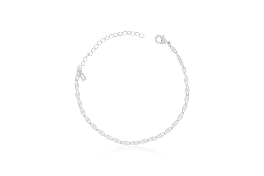 PULSEIRA BANHADA EM PRATA LEVE, ELO OVAL 1,20mm LARGURA, 16cm COMPRIMENTO, EXTENSOR 5cm COMPRIMENTO E MENINO 9mm DIÂMETRO