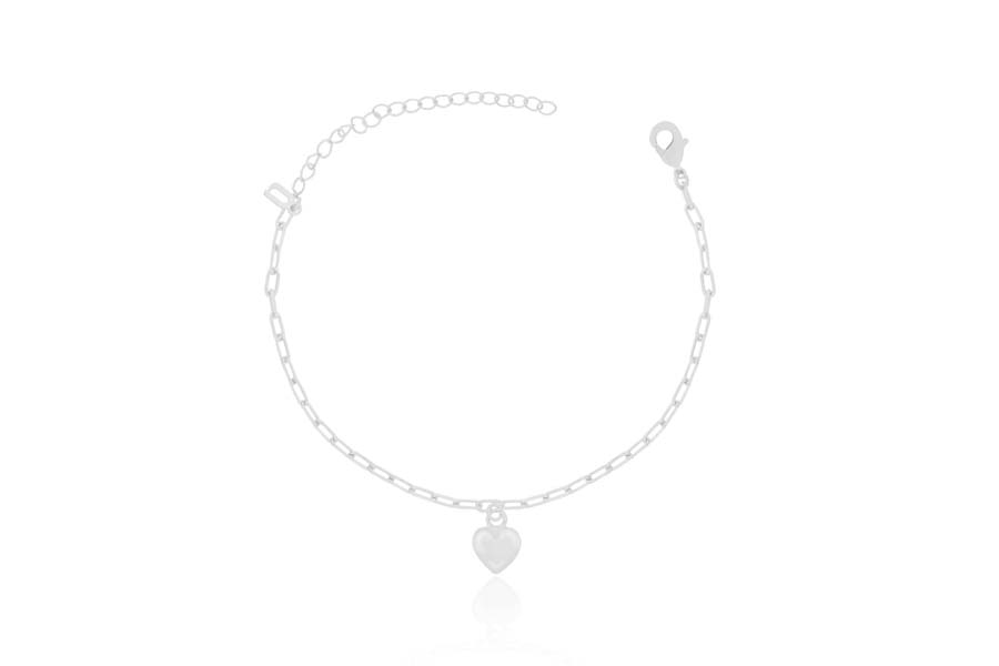 PULSEIRA BANHADA EM PRATA LEVE, DUPLA, ELO 1,50mm ESPESSURA, PONTO DE LUZ 5mm E CORAÇÃO VAZADO 15,50mm LARGURA COM PATA