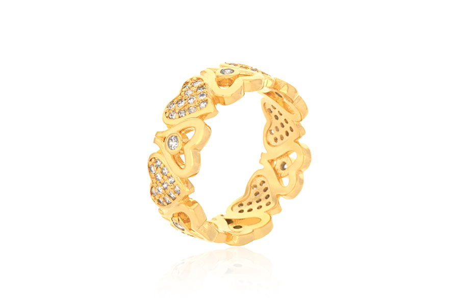 ANEL PRATA LEVE 1 FILEIRA DE ZIRCÔNIAS E LATERAIS COM CORAÇÕES VAZADOS