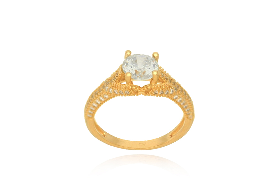 ANEL BANHADO EM OURO, COM ZIRCÔNIAS E DETALHE LISO