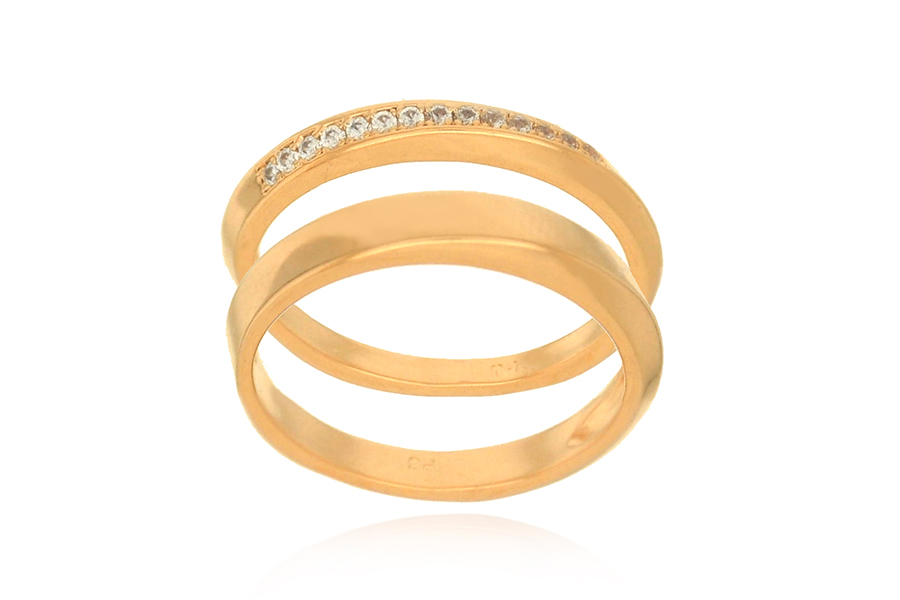 ANEL BANHADO EM OURO, SOLITÁRIO 8mm, COM 173 ZIRCÔNIAS