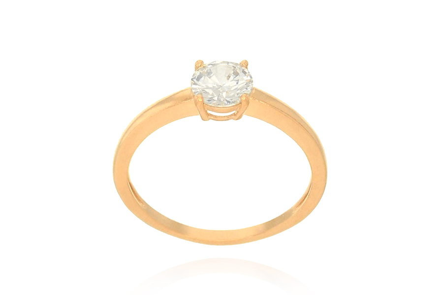 ANEL BANHADO EM OURO, SOLITÁRIO 7mm E O ARO INTEIRO COM ZIRCÔNIAS