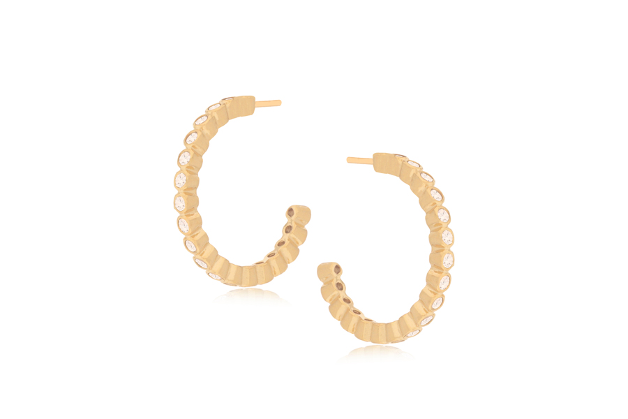 BRINCO BANHADO EM OURO, ARGOLA 20mm DIÂMETRO, 3mm LARGURA COM 16 ZIRCÔNIAS