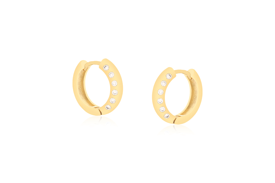 BRINCO BANHADO EM OURO, 15mm ALTURA, 8,40mm DE LARGURA COM UMA FILEIRA DE ZIRCÔNIA