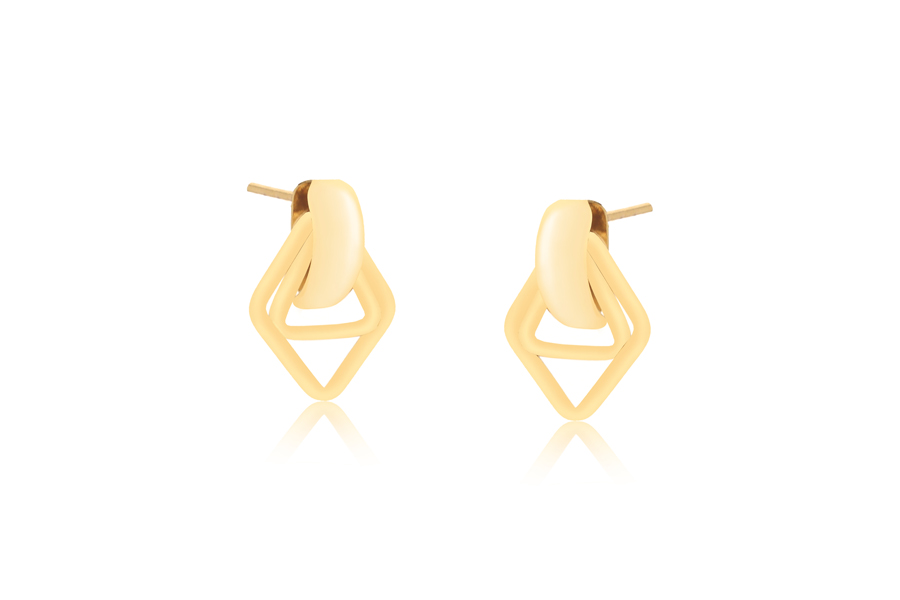 BRINCO BANHADO EM OURO, 2 NAVETES TORCIDAS 29x12mm, LISO OU ACETINADO, PROVIN OPAC