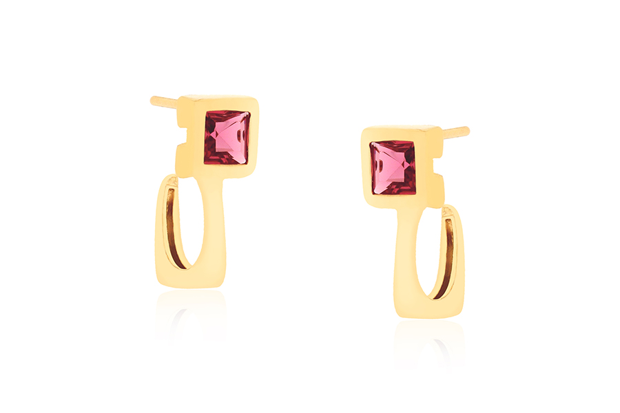 BRINCO BANHADO EM OURO, CRISTAL RETANGULAR 12x10mm