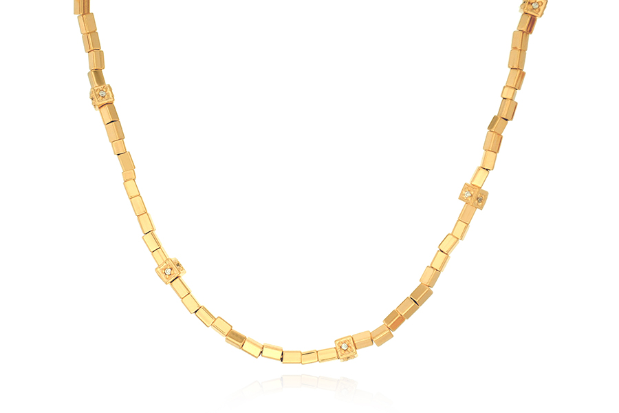CHOKER BANHADA EM OURO, 36cm COMPRIMENTO, VENEZIANA ALONGADA 1,50mm ESPESSURA, QUADRADO 9,50mm