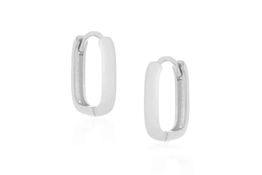 BRINCO BANHADO EM PRATA LEVE, ARGOLINHA RETANGULAR 11x8mm