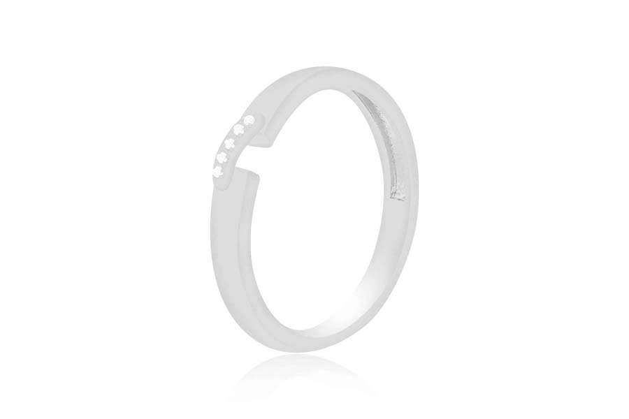 ANEL EM PRATA, MEIA ALIANÇA COM DUAS FILEIRAS DE ZIRCÔNIAS, 2,30mm LARGURA
