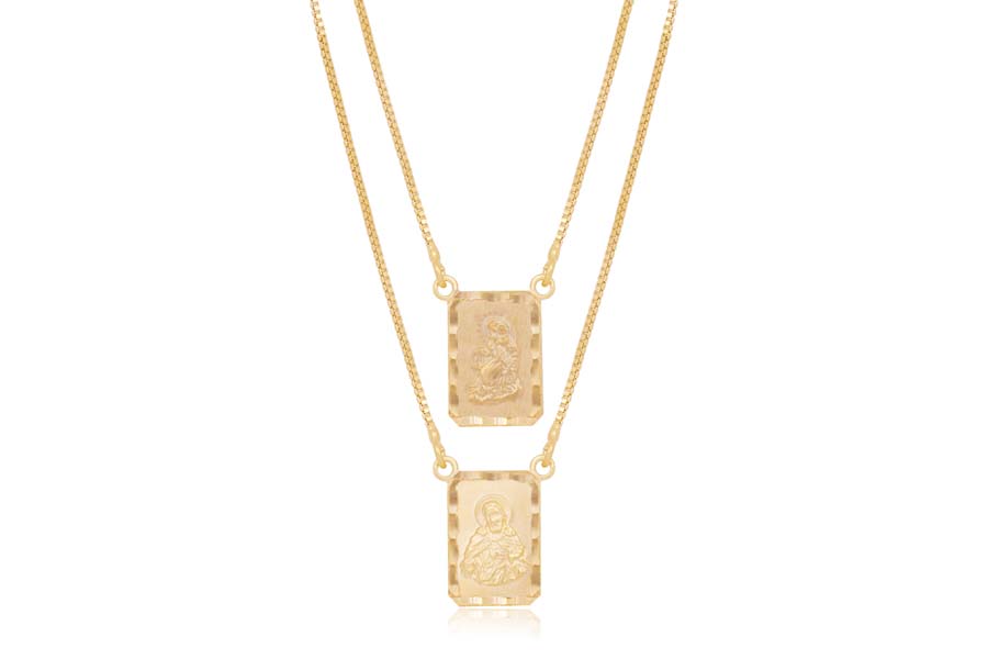 GARGANTILHA BANHADA EM OURO, ESCAPULÁRIO SIMPLES, CARMO, COM VENEZIANA 1,50mm, LINHA TRADICIONAL
