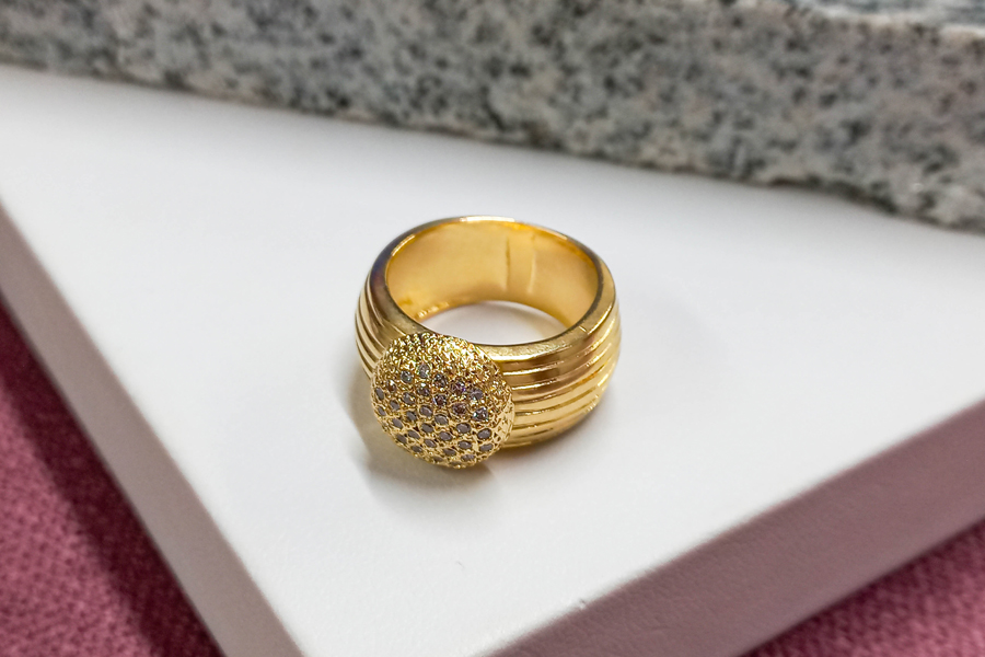 ANEL BANHADO EM OURO, MEIA ESFERA 11mm