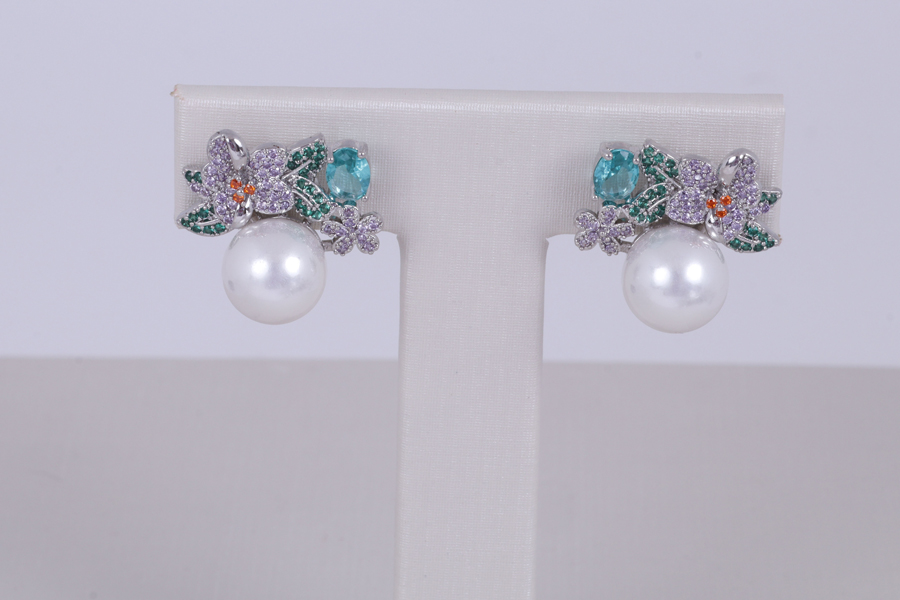 BRINCO BANHADO EM RÓDIO BRANCO, VAZADO, PÉROLA 11mm