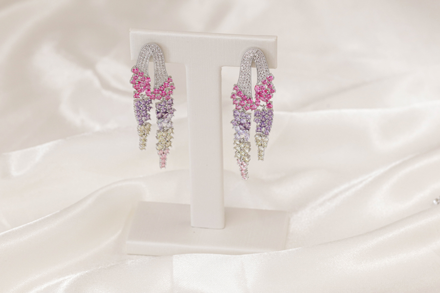 BRINCO BANHADO EM PRATA LEVE, COM PENDURICOS E PONTO DE LUZ 5mm