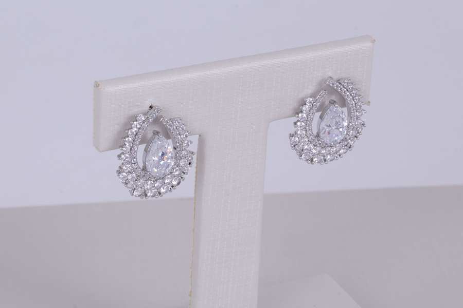 BRINCO EM PRATA, GOTA DE ZIRCÔNIA COM GALERIA EM FILIGRANA, 5,20mm ALTURA