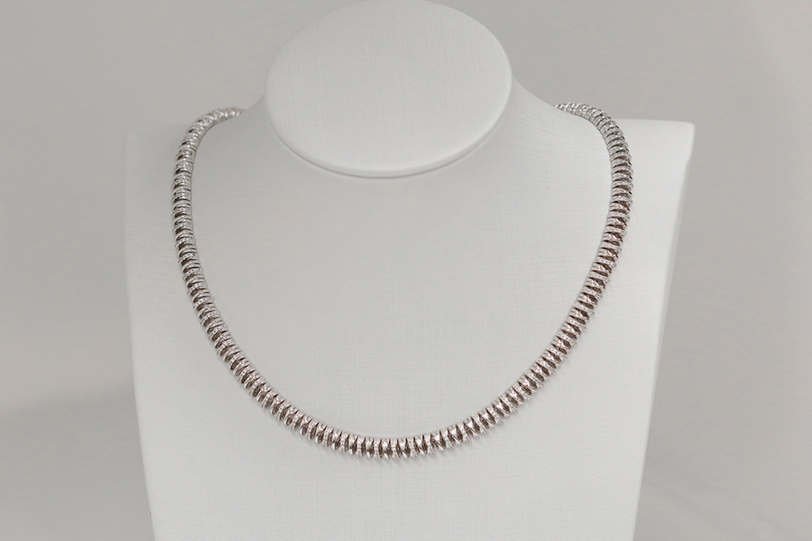 CHOKER BANHADA EM RÓDIO BRANCO, TRIPLA, 37cm COMPRIMENTO, EXTENSOR 10cm COMPRIMENTO E CORAÇÃO 14mm ALTURA