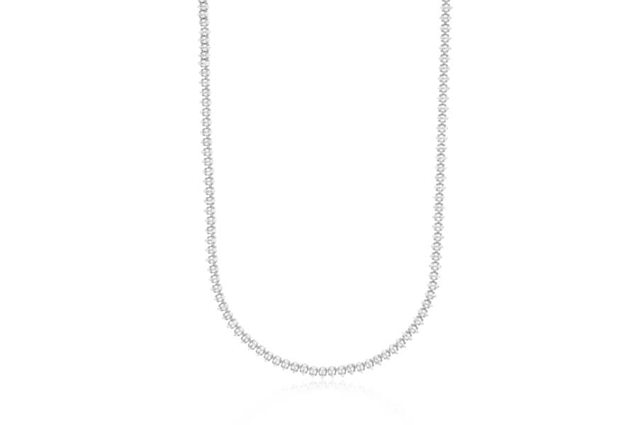 GARGANTILHA BANHADA EM RÓDIO BRANCO, 43cm COMPRIMENTO, COM ZIRCÔNIAS RETANGULARES