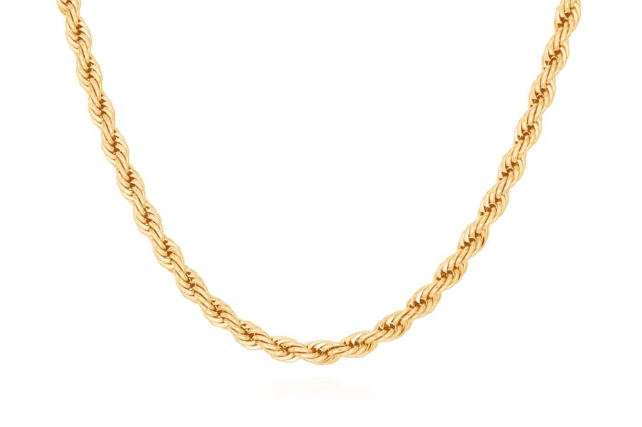 CORRENTE BANHADA EM OURO, ELO CORDA 2,50mm, 45cm COMPRIMENTO, EXTENSOR 5cm COMPRIMENTO E PESO 8,70g