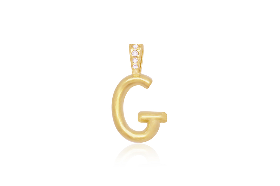 PINGENTE BANHADO EM OURO, LETRA G, 14mm ALTURA