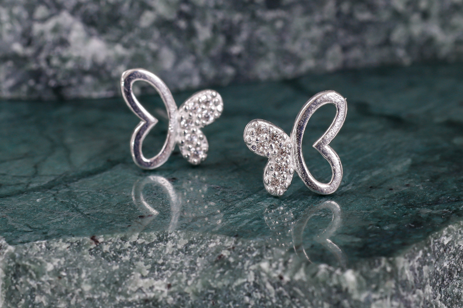 BRINCO EM PRATA, TREVO CRAVEJADO COM BORDAS TRABALHADAS, 10,50mm LARGURA