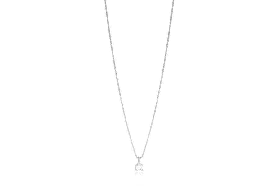 GARGANTILHA BANHADA EM RÓDIO BRANCO, RABO DE RATO 1mm, 40cm COMPRIMENTO, EXTENSOR 5cm COMPRIMENTO E PINGENTE 10x6mm, COLEÇÃO ATENA