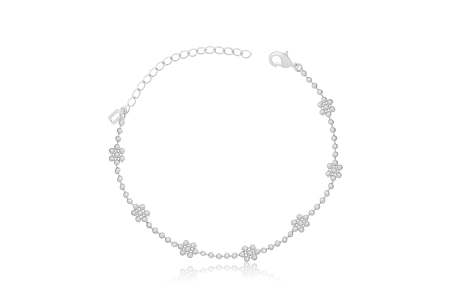 PULSEIRA BANHADA EM RÓDIO BRANCO, CORRENTE ELO 3,20mm LARGURA, EXTENSOR 5cm COMPRIMENTO E PESO 3,50g