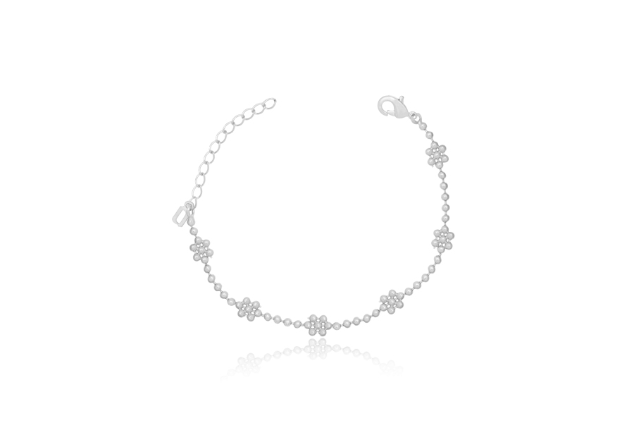 PULSEIRA BANHADA EM RÓDIO BRANCO, INFANTIL, DUPLA, ELO OVAL 0,80mm, 14cm COMPRIMENTO, EXTENSOR 5cm COMPRIMENTO E PONTO DE LUZ 3mm