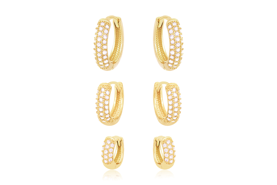 BRINCO BANHADO EM OURO, 24mm ALTURA, 9,50mm LARGURA E ZIRCÔNIA 8mm, PARA TODAS AS CORES