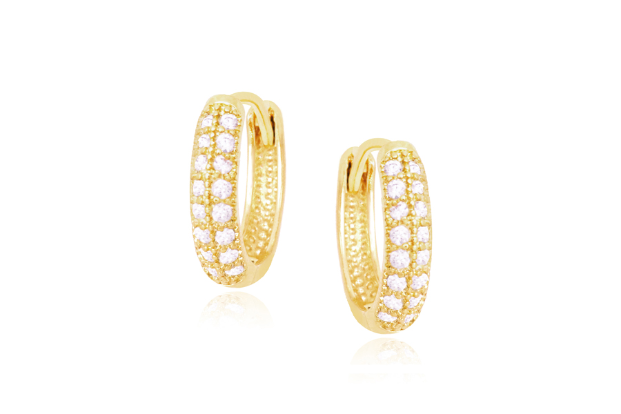BRINCO BANHADO EM OURO, ARGOLA 24mm DIÂMETRO, 12mm LARGURA COM 168 ZIRCÔNIAS