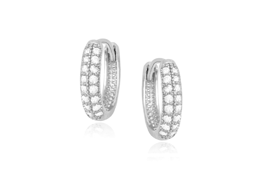 BRINCO EM PRATA, ARGOLINHA CLICK 11,80mm DIÂMETRO, ARO 1,80mm LARGURA, 1 FILEIRA DE ZIRCÔNIAS