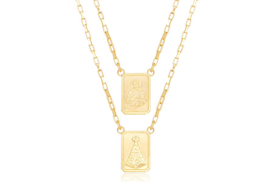 GARGANTILHA BANHADO EM OURO ESCAPULÁRIO MEDALHA 14X10mm, 60cm COMPRIMENTO, PELA GRAÇA SOIS SALVOS, O SENHOR TE ABENCOE E TE GUARDE