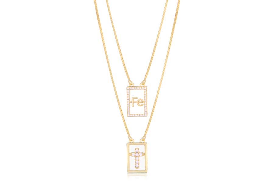 GARGANTILHA BANHADA EM OURO, ELO 2,30mm LARGURA, 60cm COMPRIMENTO E CRUZ 25mm ALTURA, 16mm LARGURA