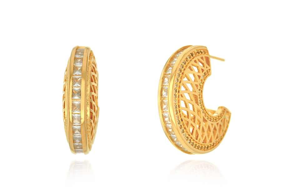 BRINCO BANHADO EM OURO, ARGOLINHA 14,50mm LARGURA COM 11 ZIRCÔNIAS