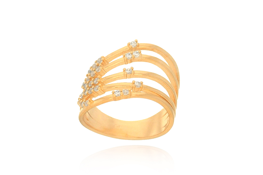 ANEL BANHADO EM OURO, APARADOR DUPLO COM 2 FILEIRAS DE ZIRCÔNIAS CADA