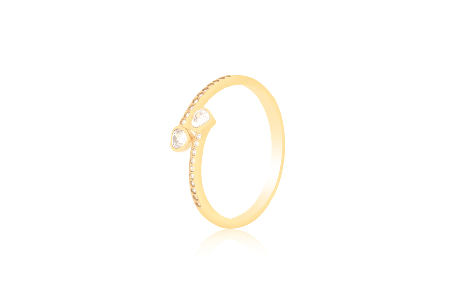 ANEL BANHADO EM OURO, CRISTAL GOTA 26X21mm