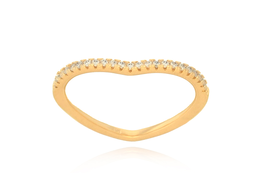 ANEL BANHADO EM OURO, CORAÇÃO CRAVEJADO 19mm LARGURA, LATERAIS CRAVEJADAS
