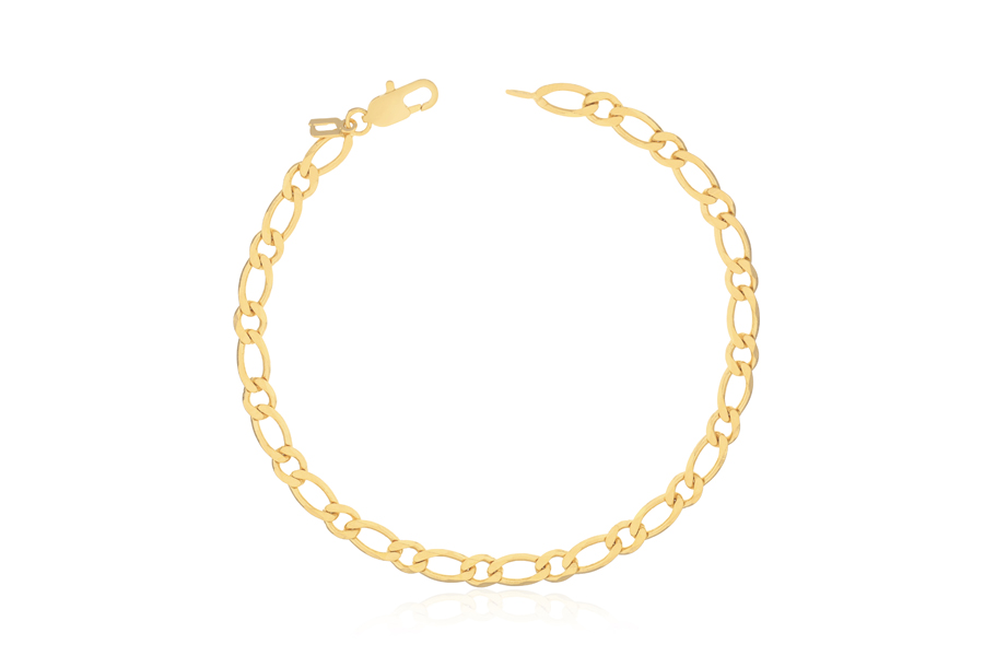 PULSEIRA BANHADA EM OURO, ELO PORTUGUÊS 7mm DIÂMETRO, 1,90mm ESPESSURA, EXTENSOR 5cm COMPRIMENTO E SAPATO